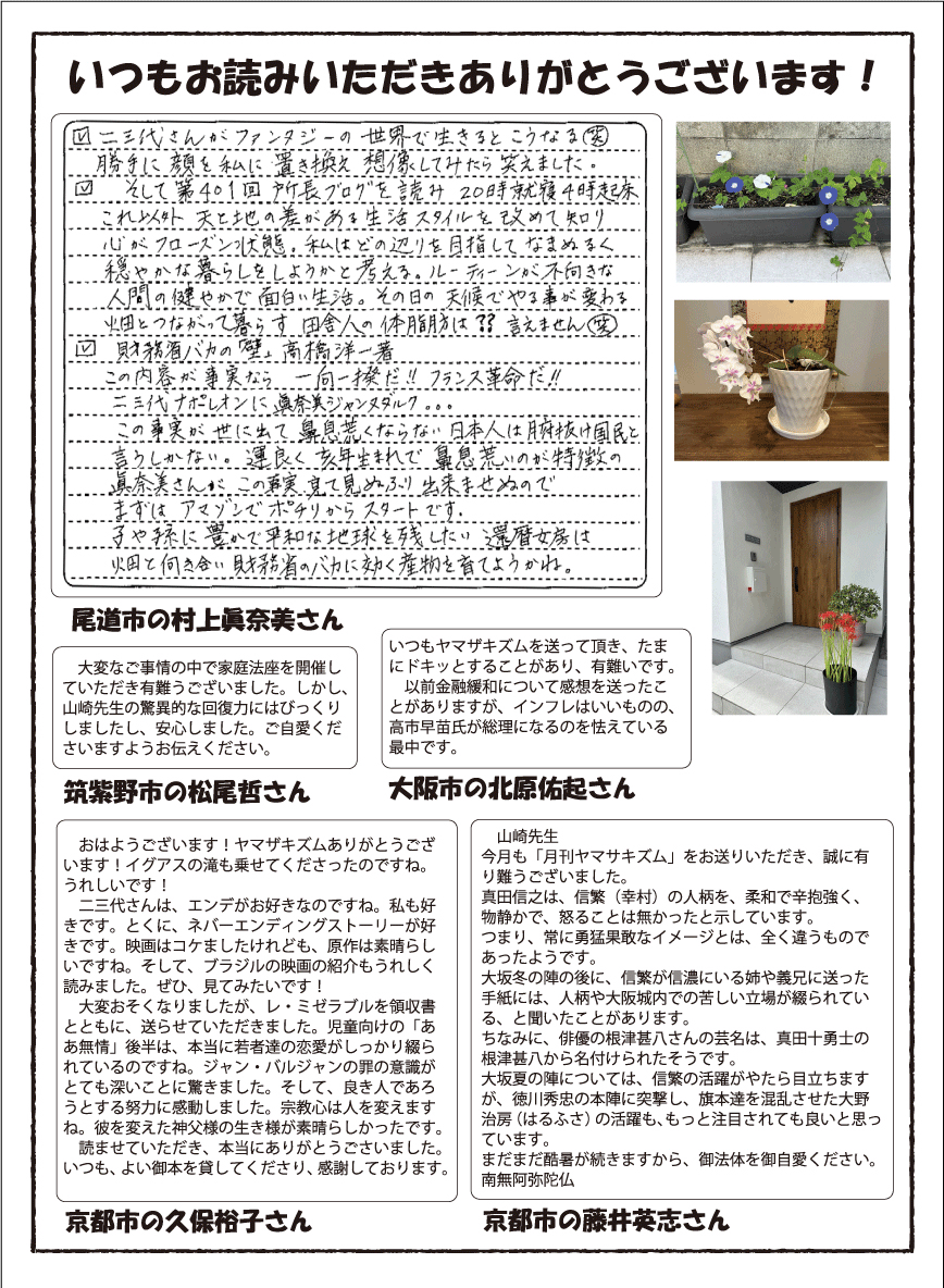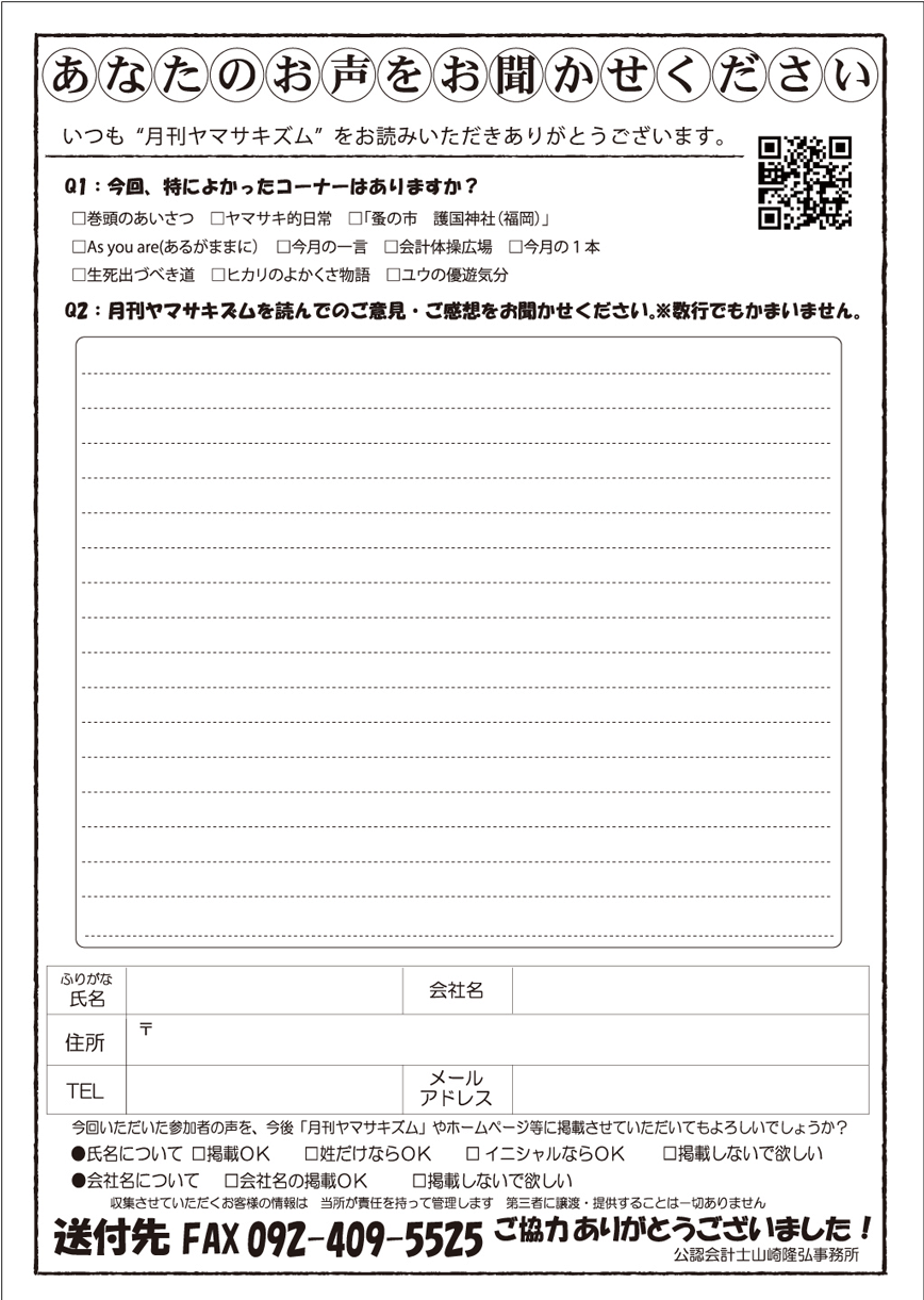 令和7年10月号の月刊ニュースレター「ヤマサキズム」ができあがりました。