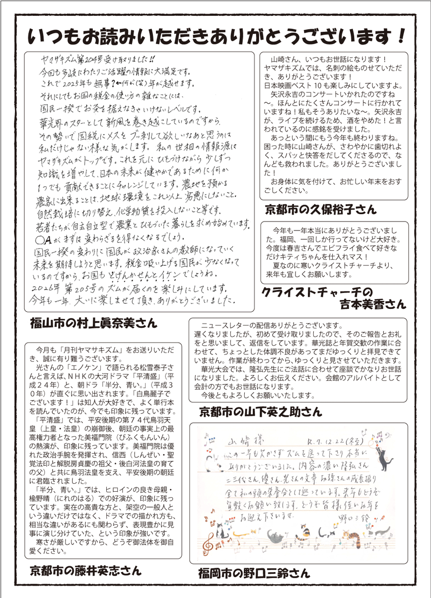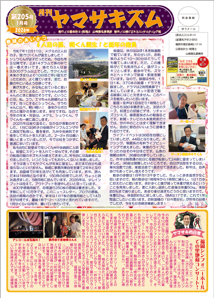 令和8年1月号の月刊ニュースレター「ヤマサキズム」ができあがりました。