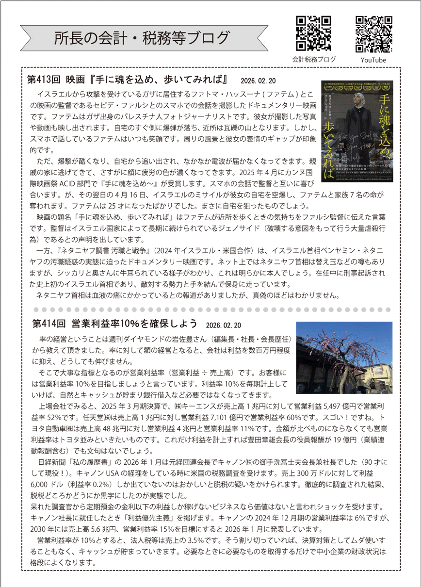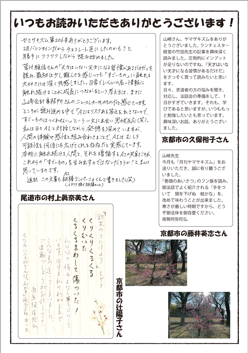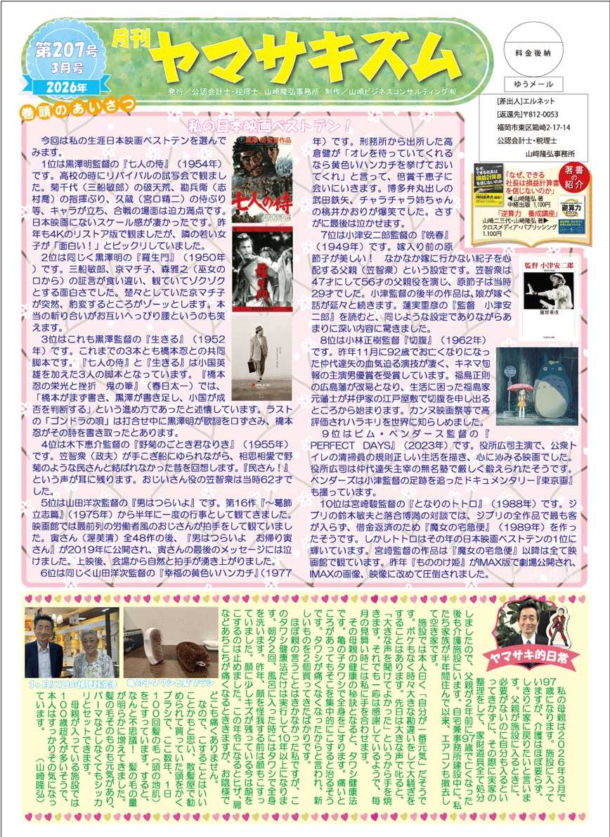 令和8年3月号の月刊ニュースレター「ヤマサキズム」ができあがりました。