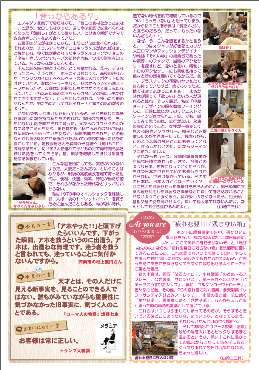 今月号の所長の「巻頭の挨拶」は「私の日本映画ベストテン!」です。映画大好きの所長は毎週末映画館に足を運んでいます。そんなに観る映画ある?と私は思うのですが、どこから情報を得るのか観る映画に事欠かない・笑。さて、どんな映画を選んだのか、じっくり読んでみてください。